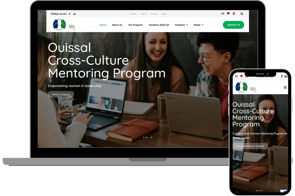 The Ouissal mentorship program was established over ten years ago by the non-profit organization EMA e.V., and has since been supported by the German Federal Ministry for Economic Cooperation and Development (BMZ) as well as GIZ. Each year, the program selects approximately 100 women from Germany and Arab countries (such as Morocco, Tunisia, Jordan) to work together in mentor-mentee pairs focused on career development goals. Our aim was to create a dignified, modern digital platform for Ouissal; including a new website and a community communication platform that facilitates collaboration and communication among participants.